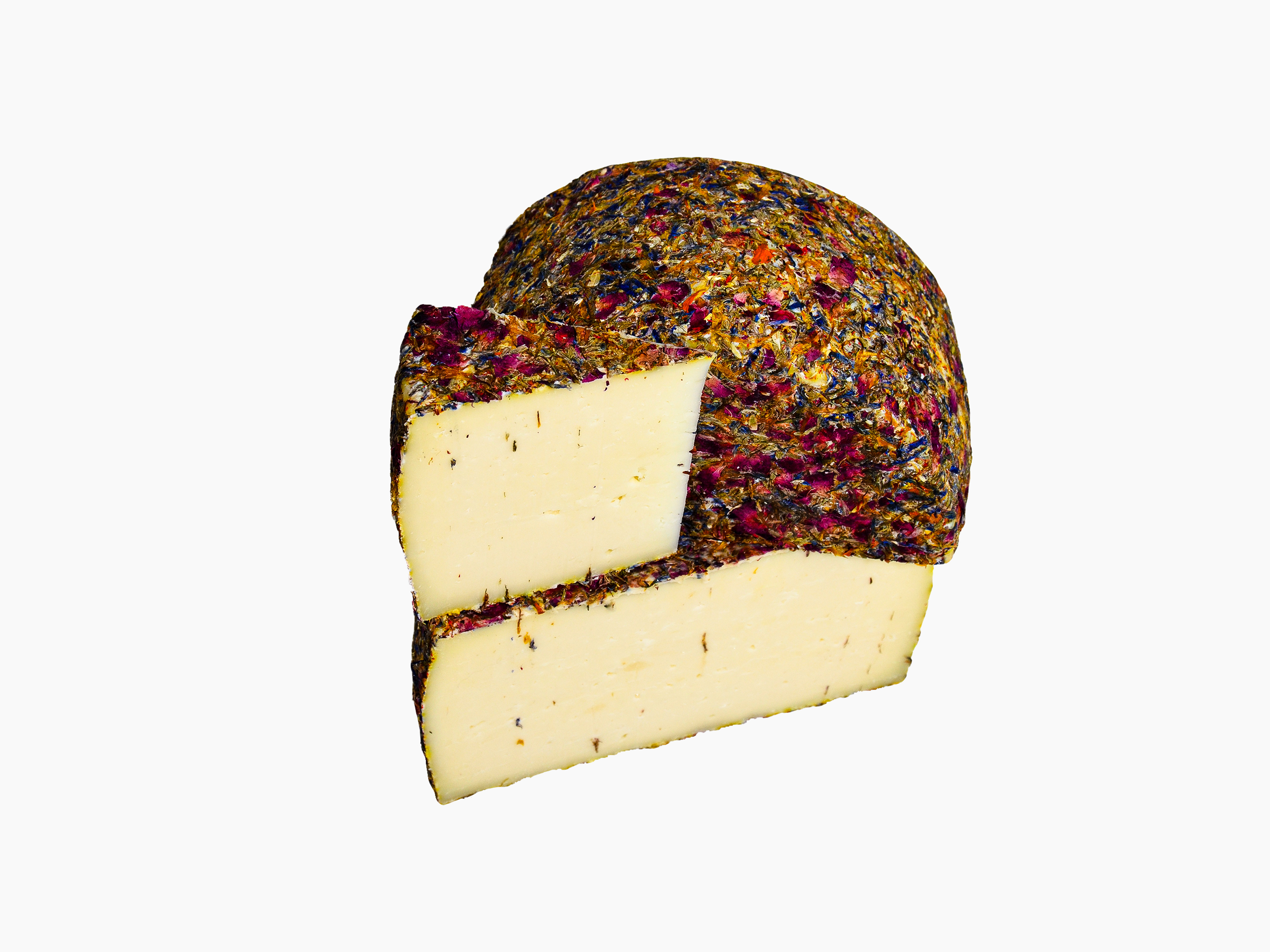 Ce queso espagnol est sublimé par un mélange de fleurs appliqué sur son pourtour. Sa pâte sèche et légèrement friable révèle un goût délicatement relevé, auquel les fleurs apportent des notes aromatiques intenses et parfumées. Un fromage original qui associe caractère et finesse.